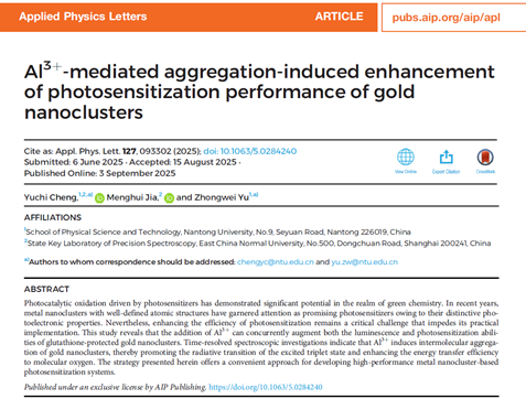 程宇驰博士在《Applied Physics Letters》发表最新研究成果