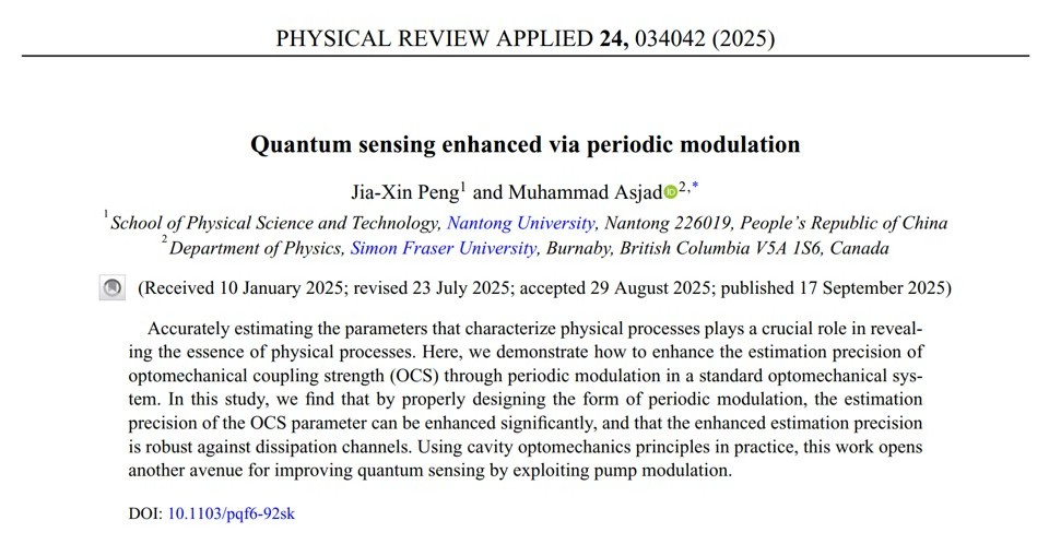 彭家鑫博士在《Physical Review Applied》发表最新研究成果