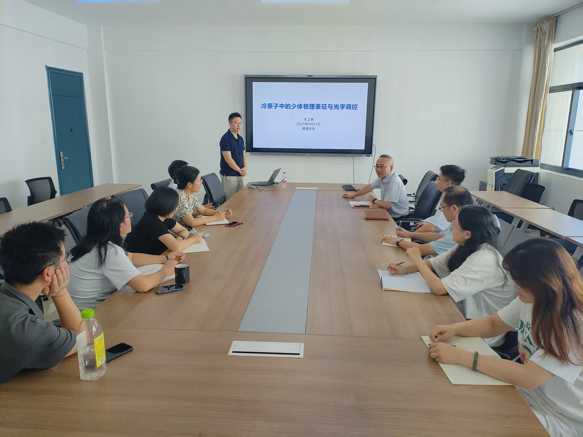 9月22日,中科院光电技术研究所朱上果博士应邀为物科院师生作了题为“冷原子中的少体物理表征与光学调控”的学术报告。报告会由院长仲崇贵主持,学院部分教师及研究生代表参加了此次学术活动。