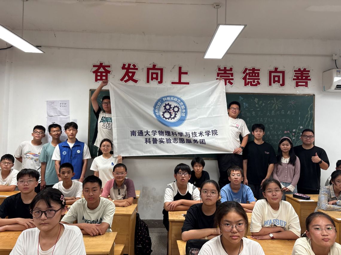 为持续深化校地协同育人机制,激发青少年对物理科学的浓厚兴趣,10月13日,物科院“格物致知”科普实验志愿服务团走进南通市通州区平潮实验初中,面向初一年级学生开展了一场别开生面的科普实践活动。本次活动以“格物见真趣 致知启新程”为主题,通过一系列妙趣横生、寓教于乐的物理实验,点燃了同学们探索物理科学的热情。