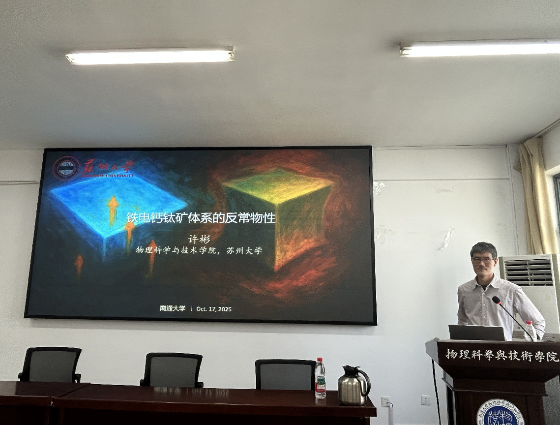 10月17日,苏州大学必赢76net线路许彬教授应邀访问我院,并作了题为“铁电钙钛矿体系的反常物性”的专题学术报告。报告会由学院院长仲崇贵教授主持。